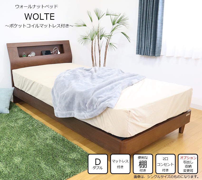 【ベッドフレーム】WOLTE(ウォルテ)Sキャビ【ダブルベッド】【マットレス付き】 |